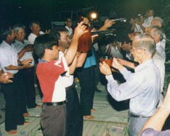 翌日は昼すぎから各祭場に招待されたツカサや村長らが神酒を飲みながら、はやし歌で踊る