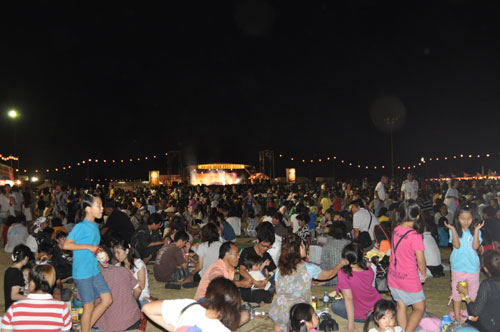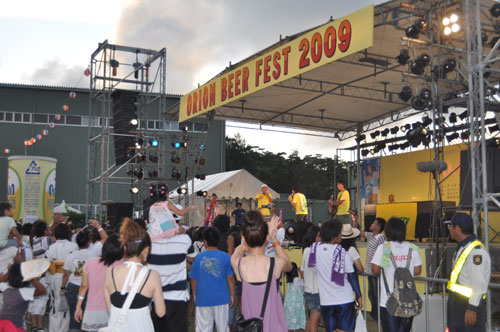 宮古島市平良多目的広場で行われたオリオンビアフェスタには、大勢の市民が詰めかけ、宮古島の夏の風物詩となっている同フェスタを楽しんだ。この日は民謡ライブのほか、かぎ花バンド、ハーベスタが出演したほか、最後に登場したBENIが会場を沸かせた。母のふるさとでのコンサートを希望したBENI。念願がかないうれしさ絶好調で乗りに乗ったライブを展開していた。 最後には花火が打ち上げられ、最高潮のうちに幕を閉じた |