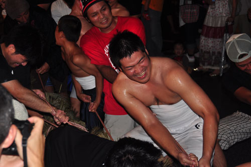 宮古島夏まつりが市内3通り会で24日行われ、大勢の親子連れで賑わいを見せた。夏まつりではパレードや宮古角力大会、第37代ミス宮古発表会などのほか多くのアトラクションで賑わった。下里通りで行われた大綱引きでは、一対一の熱戦から最後に西軍が勝ち今年の「大漁」が祈願された。