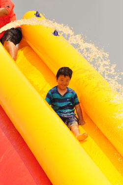 ウォータースライダーに歓声