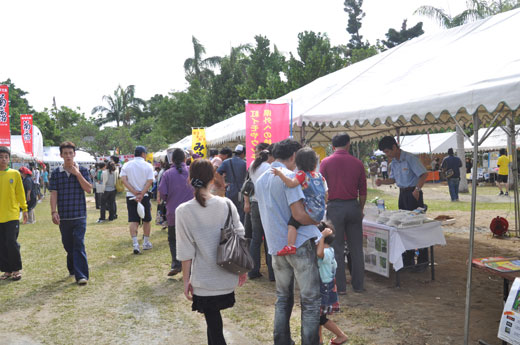 宮古の産業まつりは11月14日、15日の両日にわたり、宮古島市熱帯植物園で行われ、両日とも大勢の家族連れで賑わいを見せていた。