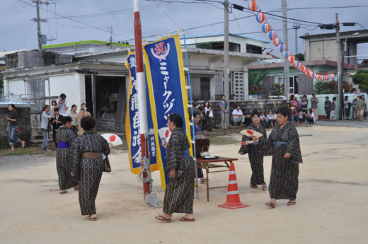 元ツカサンマの歌で始まったミャークヅツ(池間島公民館前)