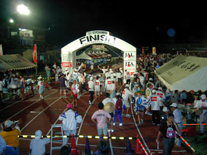 ![]() ピータークロプコ(ハンガリー)四連覇達成! 閉会式での国旗掲揚ではうれし泣き! 7時間51分22秒でゴールしたクロプコは宮古島大会 において前人未到の記録を達成した。 |