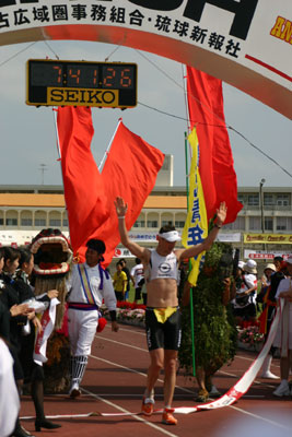 | フォースター(ドイツ)が逆転でV2達成・・女子は岡選手は大会出場7回目で栄冠に輝いた。 「波に乗れ、風になれ、20歳のストロングマン」を大会テーマに行われた、記念すべき節目の第20回大会。 大会ではマルクス・フォースター選手が7時間41分23秒で昨年に続き優勝。女子は岡いずみ選手初優勝した。最終出場者は1434人・完走を果たしたのは1314人だった。完走率91.63バーセント。 |