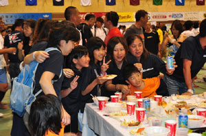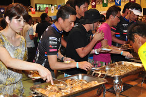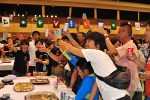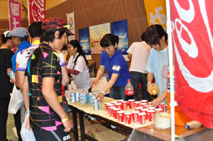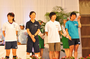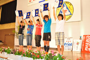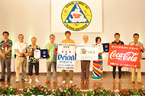 市総合体育館で開催された閉会式。総合で栄冠をつかんだアントン・ブロックヒン選手(ウクライナ)と女子優勝のビーテ・ゴエーツ選手(ドイツ)に優勝楯や大会長杯などが贈られた。また完走者1231人をたたえた。また選手らは地元の料理などを楽しんだほか、乾杯や記念写真などで式を楽しみながら、来年の大会に思いをはせていた。