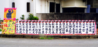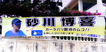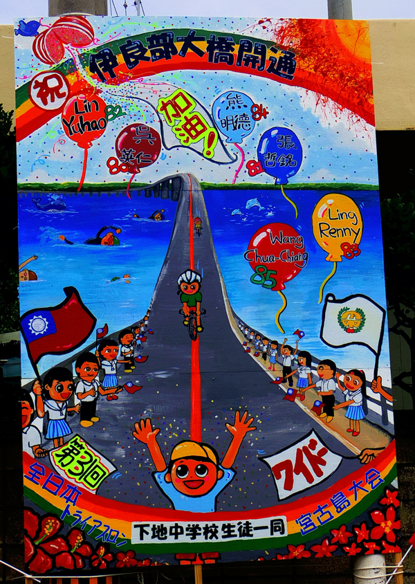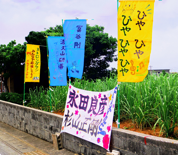 今回は作品は225点が審査の対象となった。2年連続で下地中学校がワイドー大賞に。横断幕の掲示数は昨年の261点から225点と減少。伊良部島は自治会単位の応援幕が多かったのが印象。