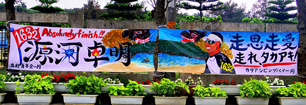 今回は作品は225点が審査の対象となった。2年連続で下地中学校がワイドー大賞に。横断幕の掲示数は昨年の261点から225点と減少。伊良部島は自治会単位の応援幕が多かったのが印象。