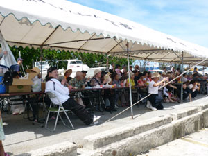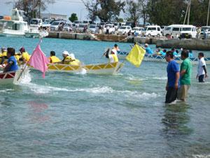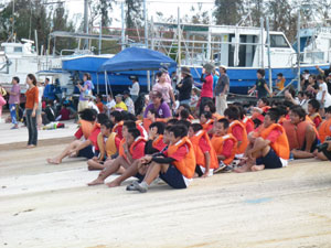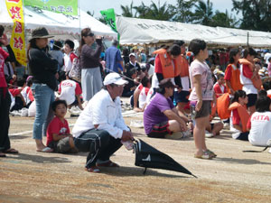 この日は小学生の児童をはじめ、青壮年の多くが海の行事に沸き返った。通常、のんびりと過ごしていいる漁港近くの街並みはこの日ばかりは一転、一年に一回の海の行事をあって朝から酒盛りの準備に大忙し。この日は正月でも朝からはお酒をたしまない人でも気分は盛り上がり、ハーリーが終わると