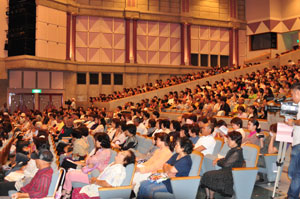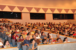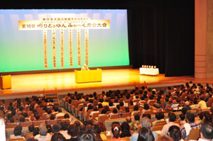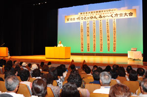 ユーモアたっぷりに宮古方言を発表。宮古島方言で体験談や意見を発表するみゃーく方言大会が、毎年開かれている。出演者はそれぞれの体験などをユーモアタップリにジャスチャーを交えながら発表。会場は笑いの渦に包まれている。
