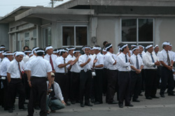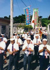 五十歳以上の男たちによる御嶽からザーと呼ばれる広場までの行列を行う。ザーでは、昨年五十歳を迎えた男たちの奉納角力があり、集まった女性たちからも盛んな声援が飛ぶ
