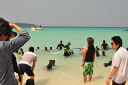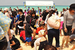 宝さがしで子供たちは大人もまじっておおはしゃぎ・フラダンスも