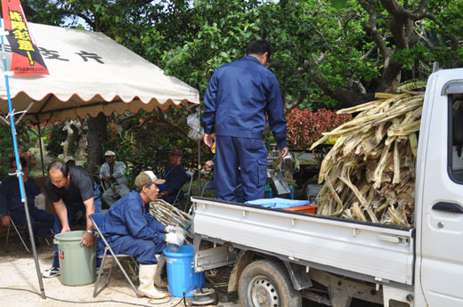 サトウキビのしぼりを実演し、できたての黒糖は提供していた。