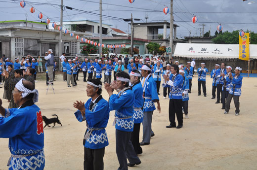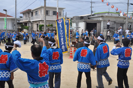 元ツカサンマの歌で始まったミャークヅツ(池間島公民館前)