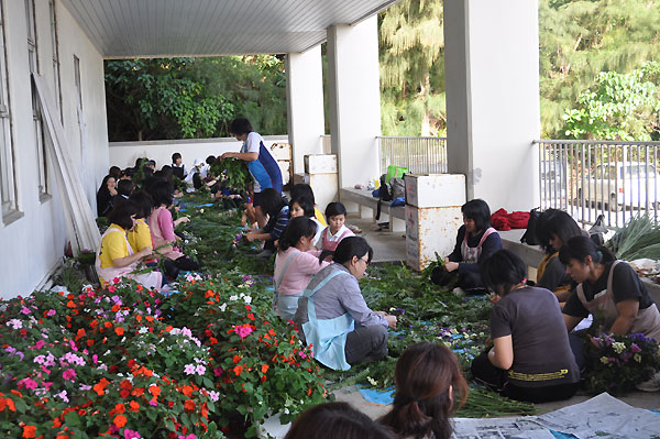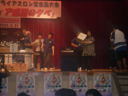 宮古地区の保育園の保母さんが集まり、毎年ゴールする選手に手作りの冠を作成する