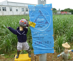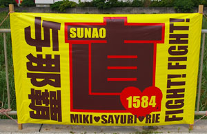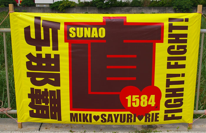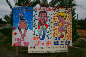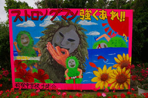 年々手の込んだ作品が増えるなか、ユニーク賞に輝いた下地豊正さんの応援幕?は「家にある材料で手作りしました!」という感じですが、力の抜けた自然さが独特の雰囲気を醸し出しています。