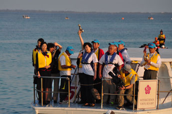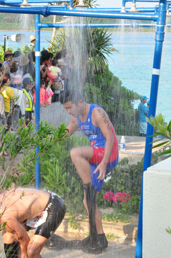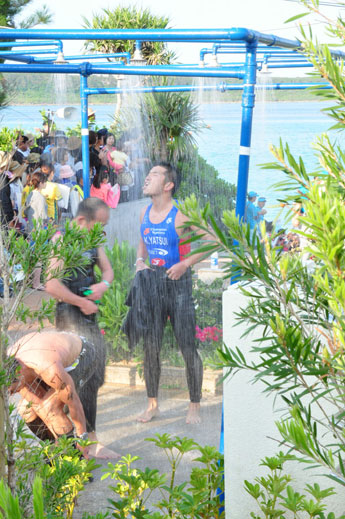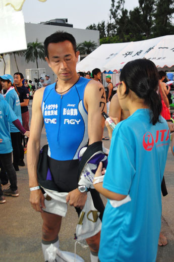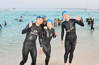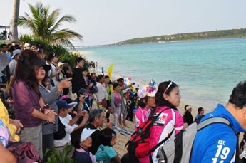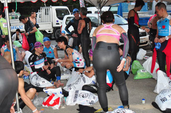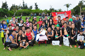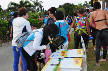 選手激励ボードに書き込む家族ら。仲間とともに緊張を和らげながらハイ・ポーズ