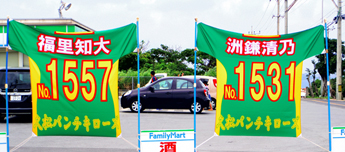 今回は作品は225点が審査の対象となった。2年連続で下地中学校がワイドー大賞に。横断幕の掲示数は昨年の261点から225点と減少。伊良部島は自治会単位の応援幕が多かったのが印象。