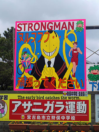 今回は作品は225点が審査の対象となった。2年連続で下地中学校がワイドー大賞に。横断幕の掲示数は昨年の261点から225点と減少。伊良部島は自治会単位の応援幕が多かったのが印象。