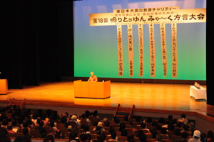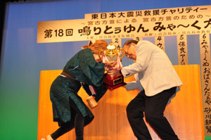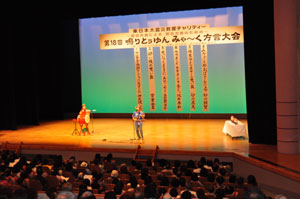 ユーモアたっぷりに宮古方言を発表。宮古島方言で体験談や意見を発表するみゃーく方言大会が、毎年開かれている。出演者はそれぞれの体験などをユーモアタップリにジャスチャーを交えながら発表。会場は笑いの渦に包まれている。